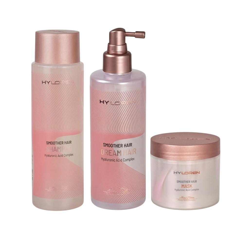מסכה 500 מ"ל Hy Loren Smoother Hair : טיפול עמוק המזין את השערה בחלבונים ובחומצה היאלורונית, מעלים "שוונצים" (Frizz) ומעניק רכות משי כבר מהשימוש הראשון.