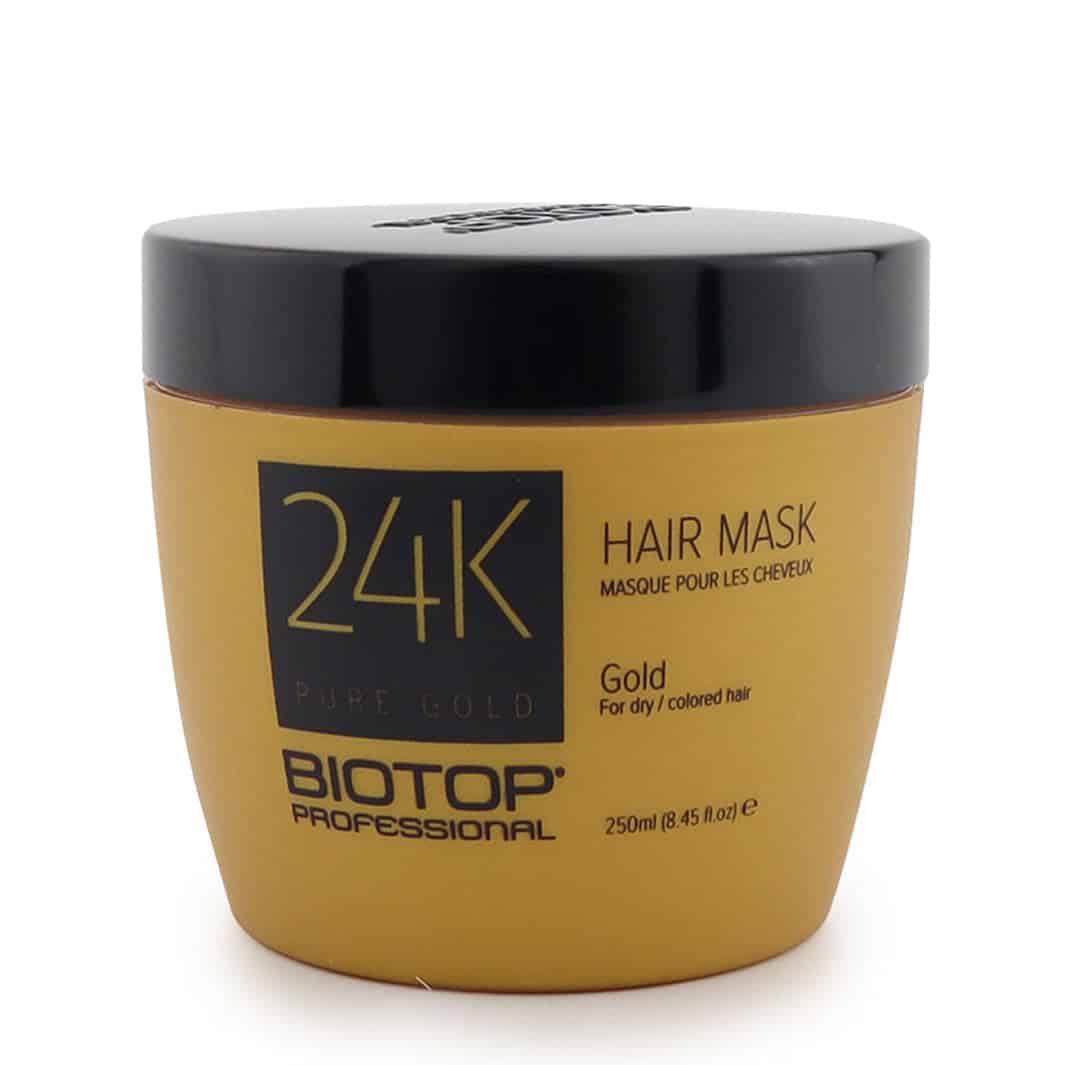 מסכת הזהב 24 קראט של חברת ביוטופ היא מסכת טיפוח מתקדמת המתאימה לטיפול בכל סוגי השיער, ובמיוחד בשיער יבש ופגום, ואף לאחר טיפולים כימיים. הנוסחה הייחודית של המסכה מעניקה לו הזנה וטיפוח מקיף.